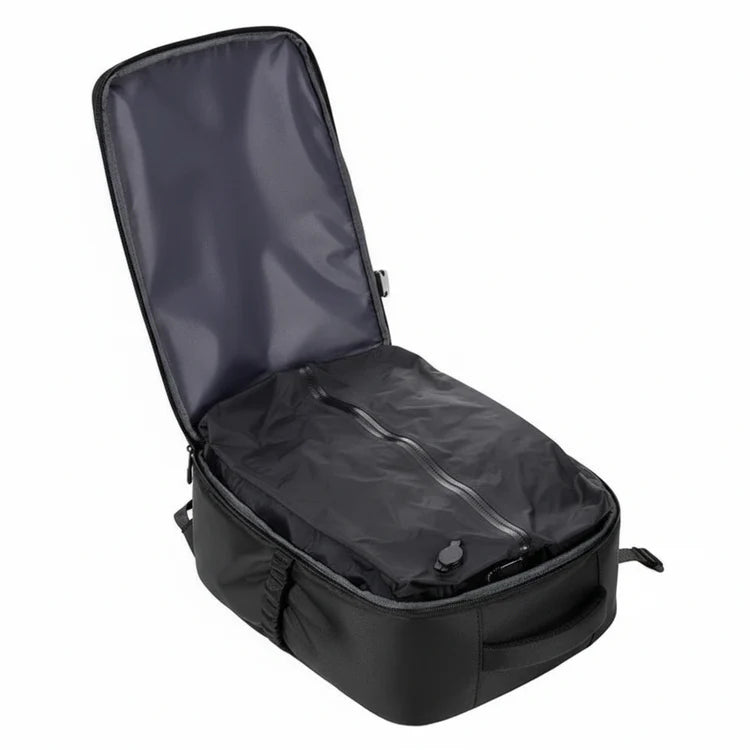 A: Due to the compression system, the backpack can hold significantly more than a standard pack of the same size. The interior layout includes compartments for clothes, accessories, documents, tech, and daily essentials. You can pack for short trips or use it as an everyday carry. The high-capacity structure handles it all.